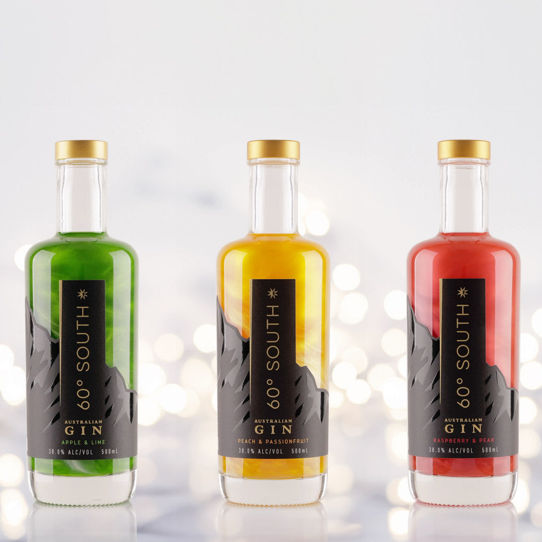 The 60° South Glitter Gin Collection features three luminous flavours, each one a celebration of sunshine and adventure: